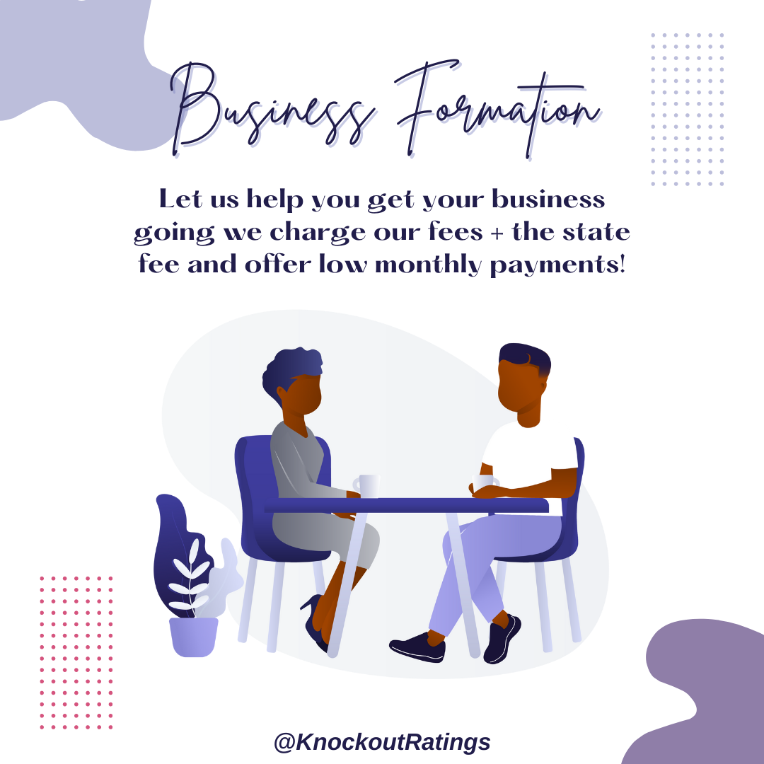 At Knockout Ratings, we understand that starting a new business is a thrilling yet challenging endeavor. Our Business Formation Services are designed to make this process smoother, ensuring your venture starts on the right foot.